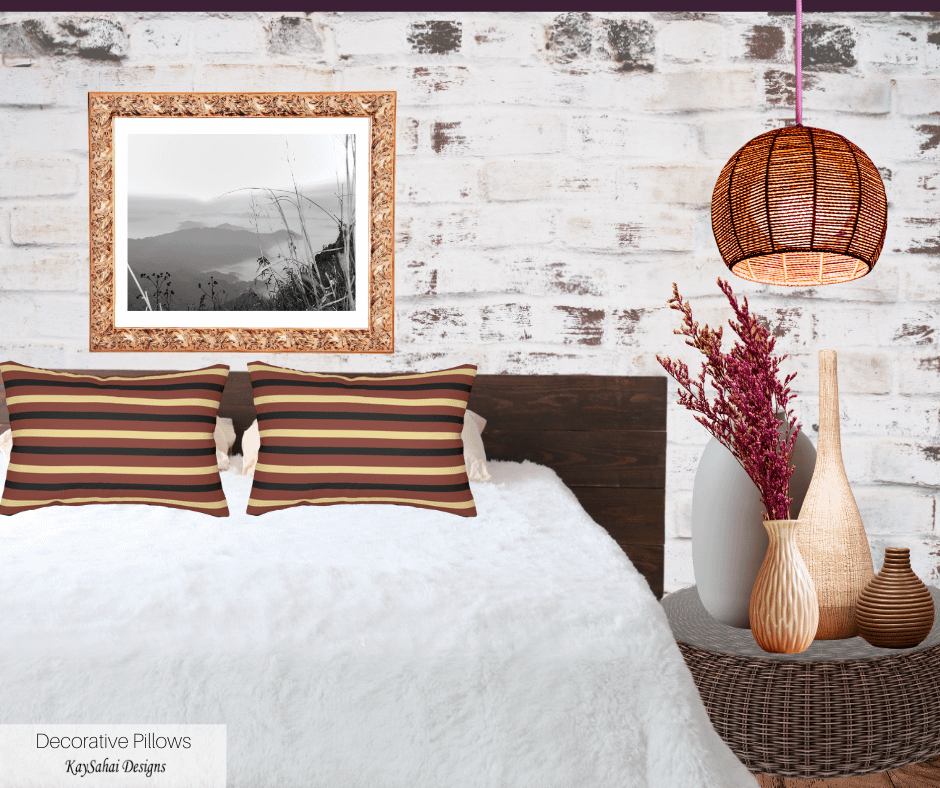 First of all, these brown, beige and black striped pillows will certainly add a special touch to a lived-in space like your study or family room.